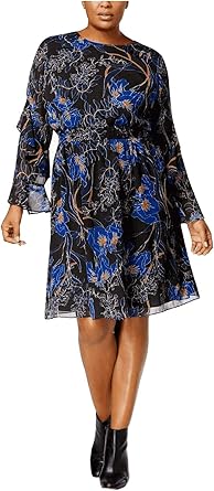 Amazon Com Macy S Inc Vestido De Fiesta De Malla Con Mangas De Volantes Para Mujer Negro 3 X Clothing