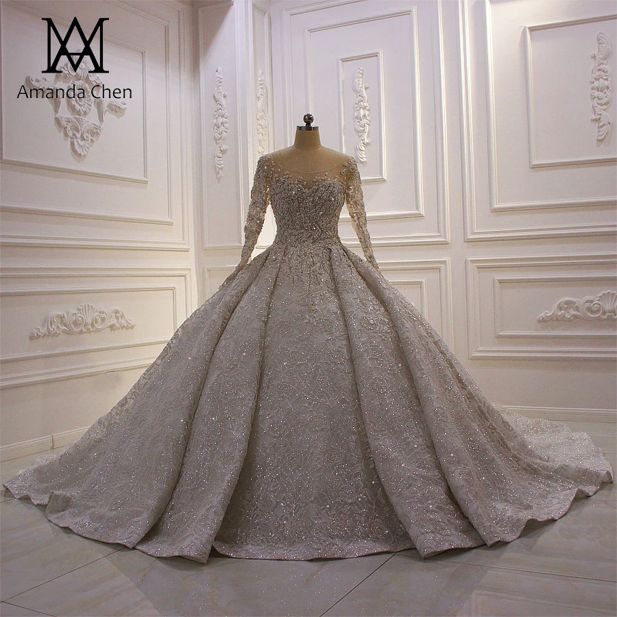 High Neck Long Sleeve Lace Appliques Crystal Beading Keyhole Back Wedding Dress Wedding Dresses Aliexpress