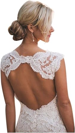 Ants Women S Cap Sleeve Keyhole Back Lace Wedding Dresses For Bride At Amazon Women S Clothing Store