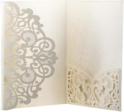 Amazon De Hochzeitseinladungen Lasergeschnittenes Blumen Design Einladungskarten Mit Fach Fur Brautpartys Verlobungsfeiern Inklusive Hullen Und Blanko Einsatze 10 Stuck Elfenbeinweiss