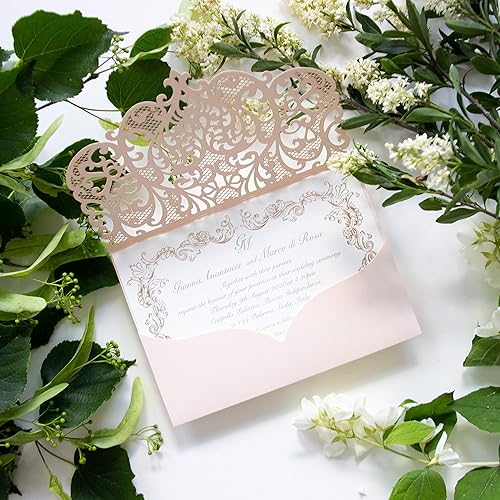 Pfirsich Lasergeschnittene Hochzeit Einladungskarten Diy Laser Cut Umschlage Geburtstag Taufe Hochzeitseinladungen Mach Es Selbst Vorgedrucktes Sample Amazon De Handmade