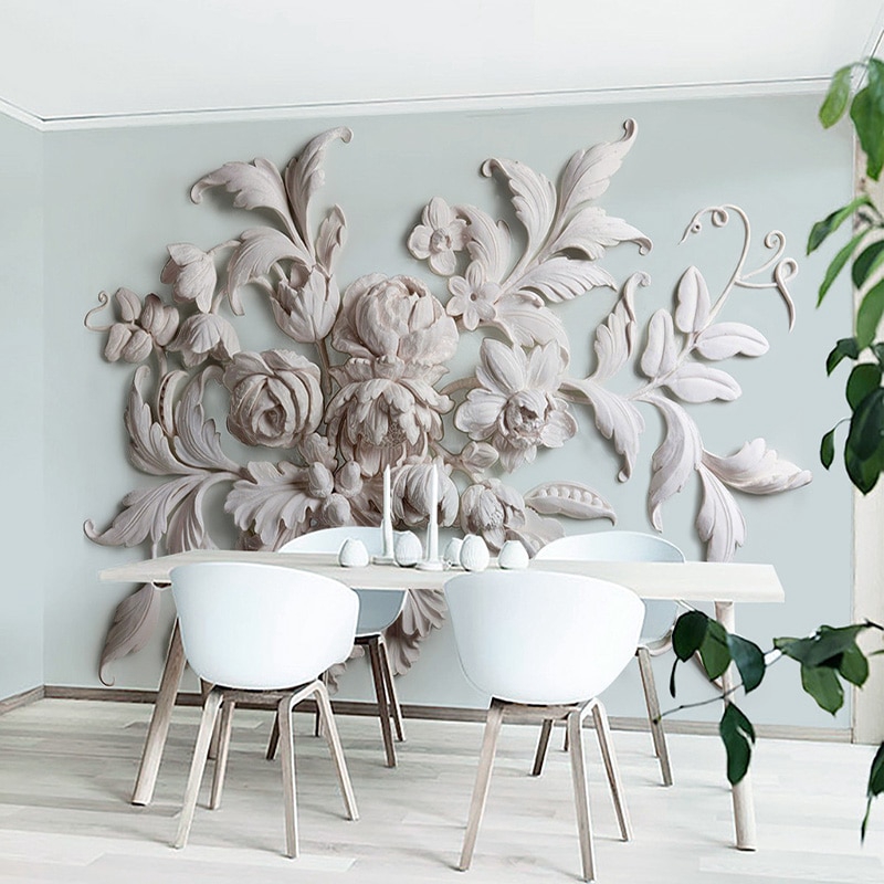 Custom aesthetic european style flower relief background wall painting 3d wall murals wallpapers landscape living room | Shopee Malaysia