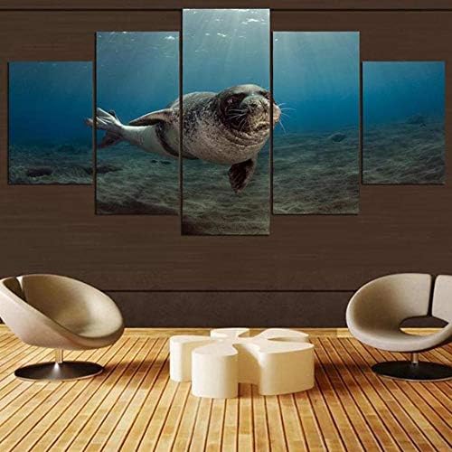 FHSFFS 5 canvas schilderijen Woonkamer Gedrukt Muur Kunstwerk Foto  Framework Home 5 Panel Mooie Zeehonden Dier