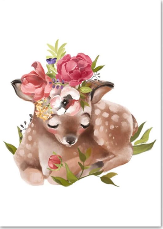 POTYX Cartoon Tier REH Blumen Kunstdruck Poster-60x80cm_Framed: Amazon.de:  Küche & Haushalt